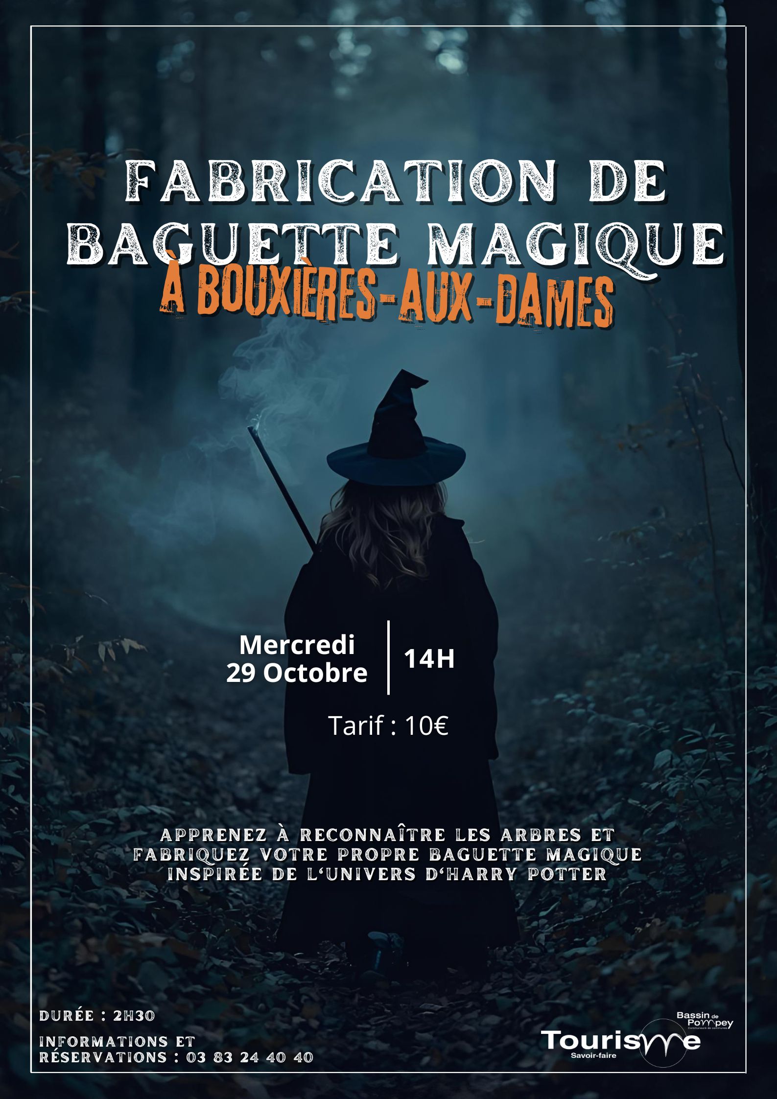 La Maison du Tourisme organise un « Atelier de fabrication de baguettes magiques » à Bouxières-aux-Dames le mercredi 29 octobre 2025 à 14h. Ensemble, nous partirons à la découverte du patrimoine naturel de Bouxières-aux-Dames pour découvrir différentes essences d’arbres, avant de laisser place à votre créativité. Petits et grands fabriqueront leur propre baguette magique, digne d’un élève de Poudlard. Cette sortie ludique et éducative est idéale pour les enfants qui rêvent de magie tout en apprenant à reconnaître les trésors de la nature.