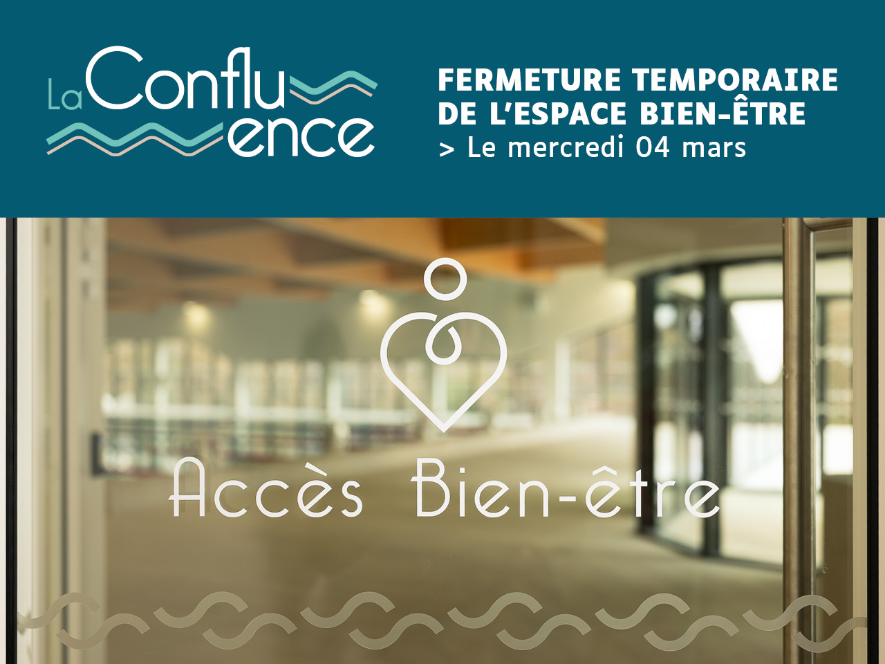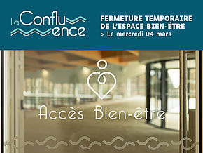 L’espace bien-être de la piscine La Confluence sera exceptionnellement fermé au public le mercredi 04 mars, toute la journée.